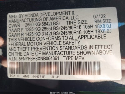 • 5FNYF6H8XNB064361