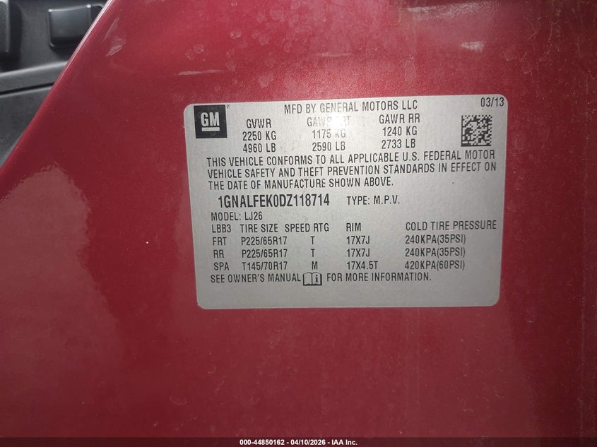 • 1GNALFEK0DZ118714