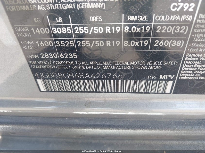 • 4JGBB8GB6BA626766