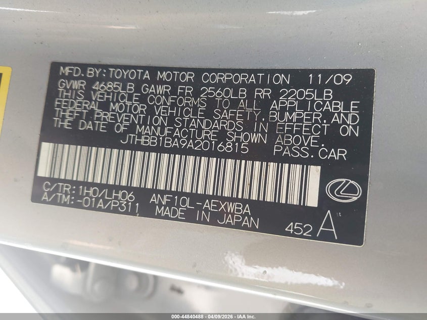 • JTHBB1BA9A2016815