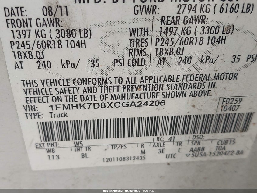 • 1FMHK7D8XCGA24206
