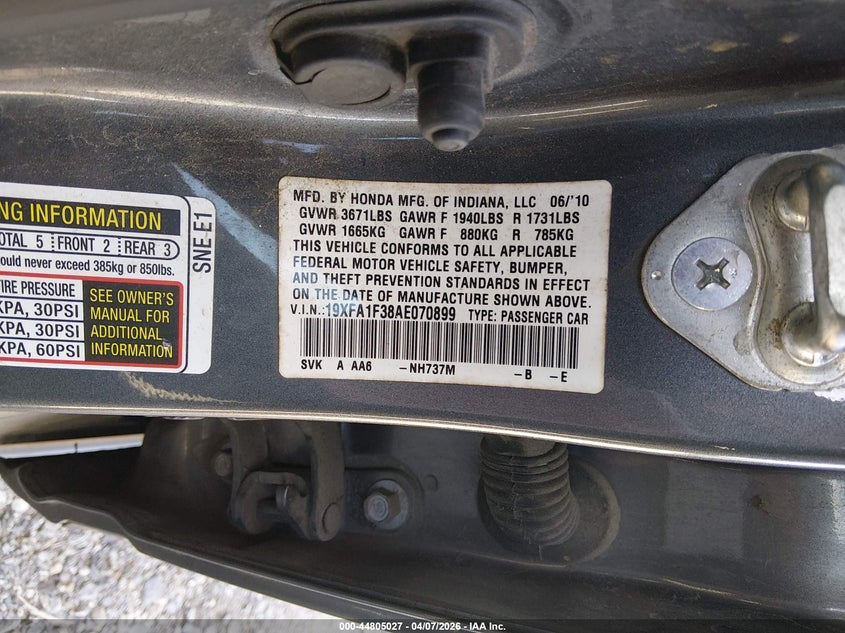 2010 HONDA CIVIC VP for Sale in Scott, AR