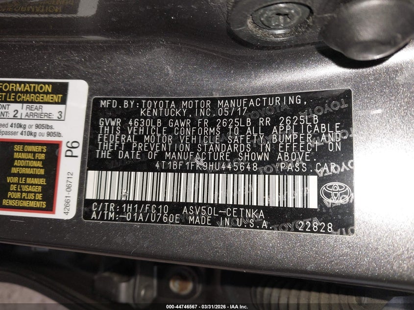 • 4T1BF1FK9HU445648