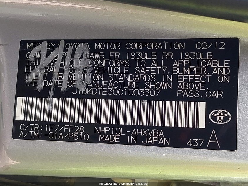 • JTDKDTB30C1003307