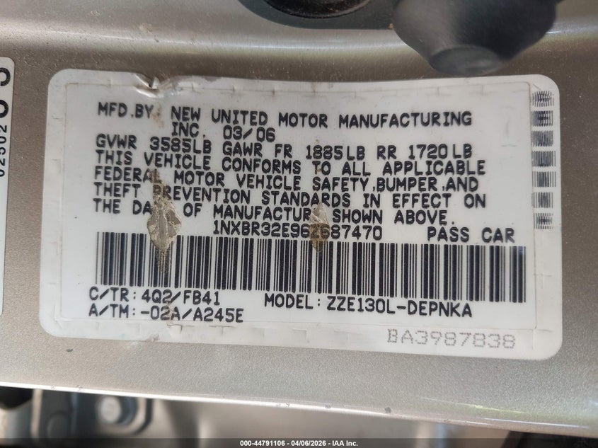 • 1NXBR32E96Z687470