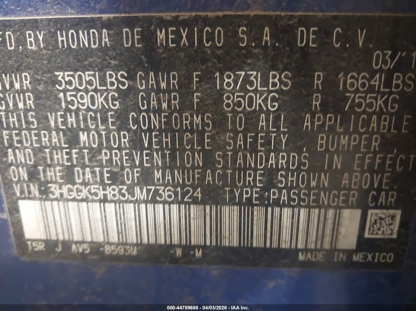 • 3HGGK5H83JM736124