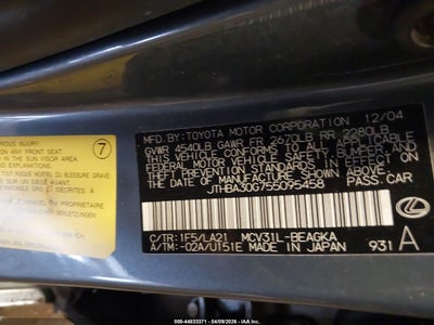 • JTHBA30G755095458