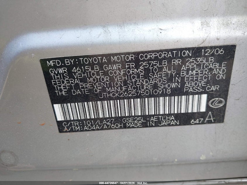 • JTHCK262575010918