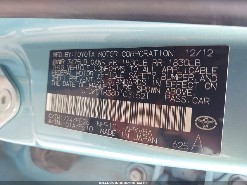 • JTDKDTB38D1031521