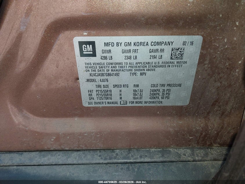 • KL4CJASB7GB641492