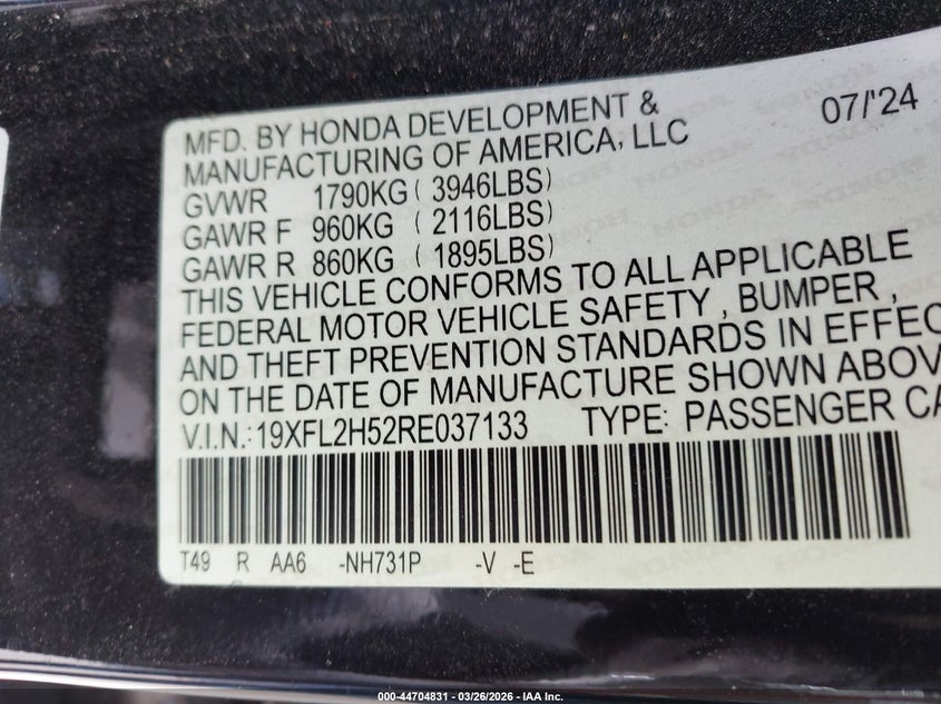 • 19XFL2H52RE037133