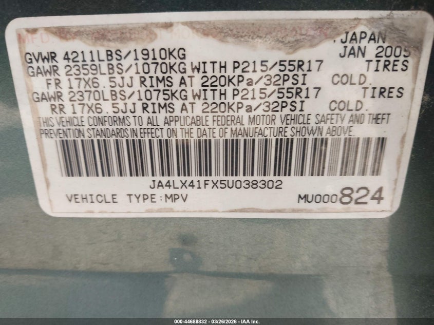 • JA4LX41FX5U038302