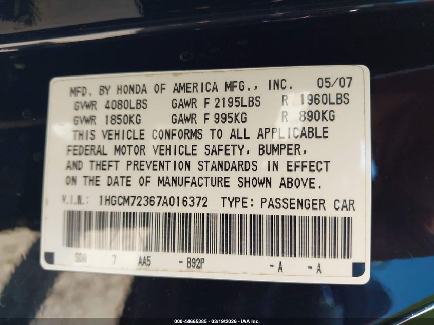 • 1HGCM72367A016372