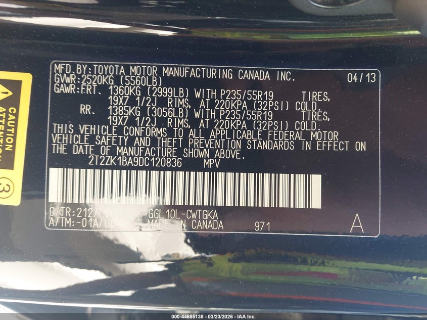 • 2T2ZK1BA9DC120836