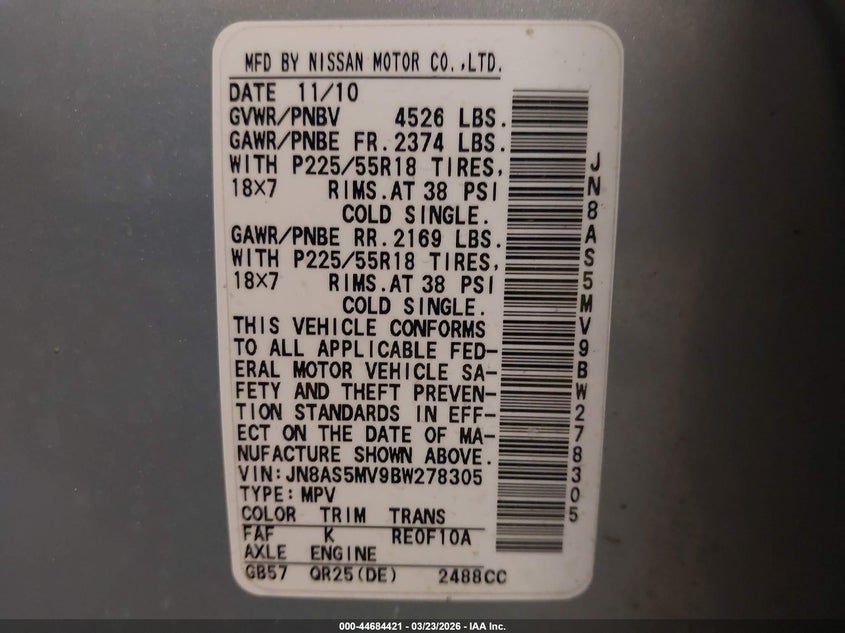 • JN8AS5MV9BW278305