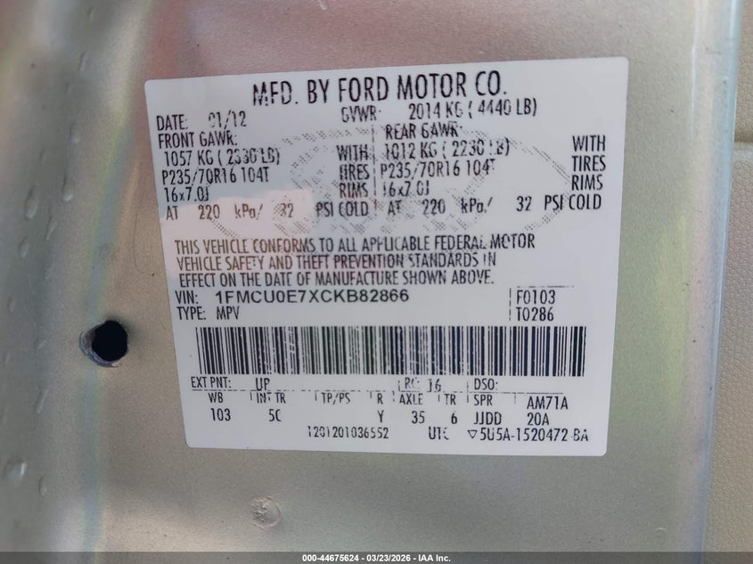 • 1FMCU0E7XCKB82866