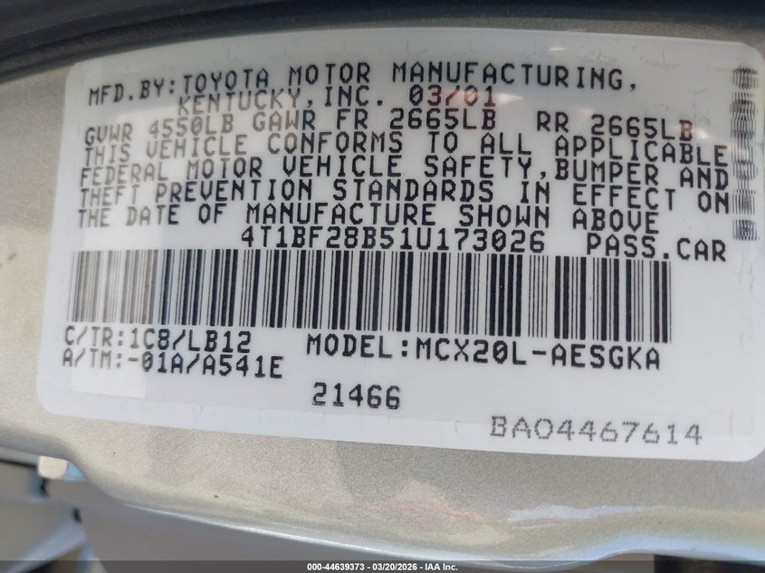 • 4T1BF28B51U173026