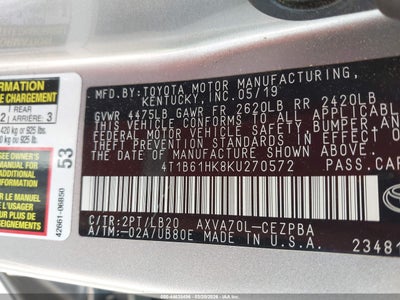 • 4T1B61HK8KU270572