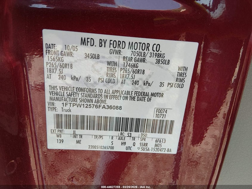 • 1FTPW12576FA36088