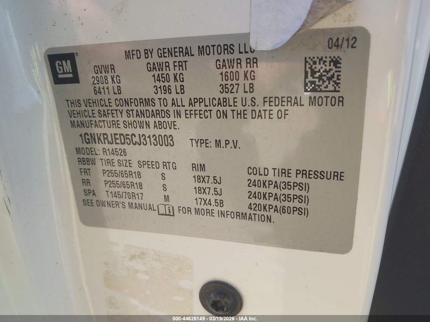 • 1GNKRJED5CJ313003