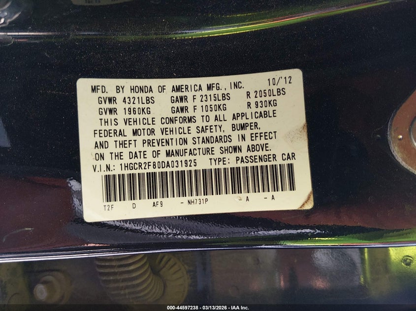• 1HGCR2F80DA031925