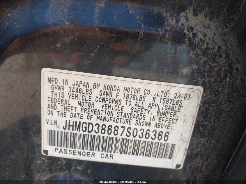 • JHMGD38687S036366