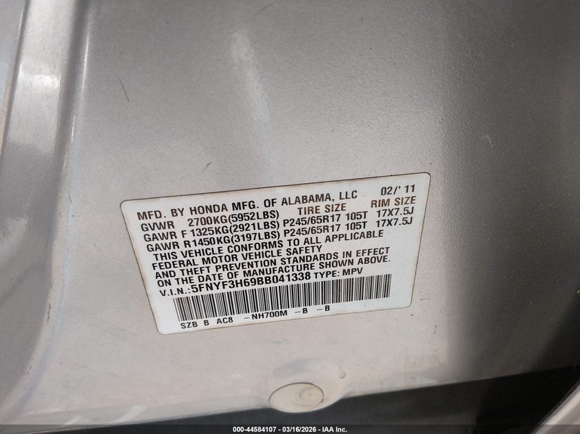 • 5FNYF3H69BB041338