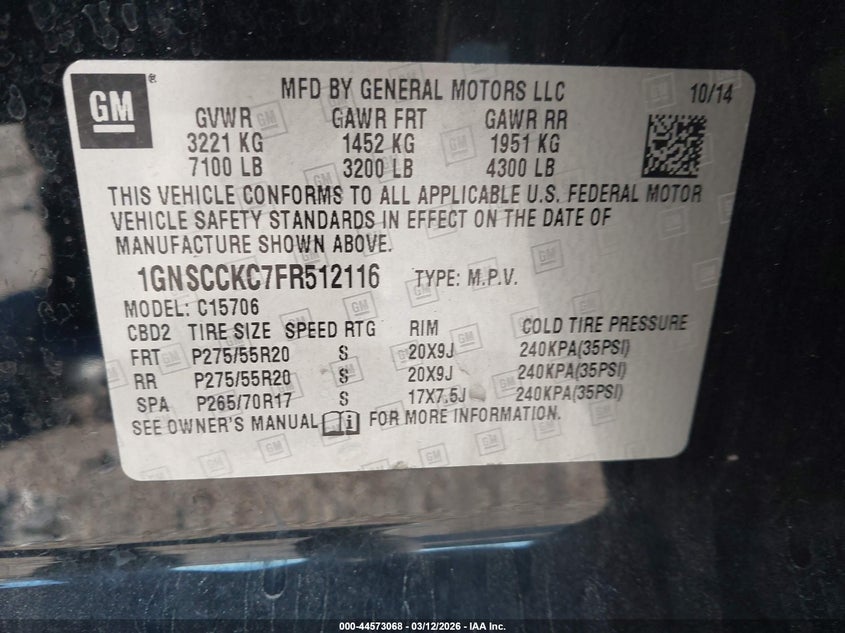 • 1GNSCCKC7FR512116