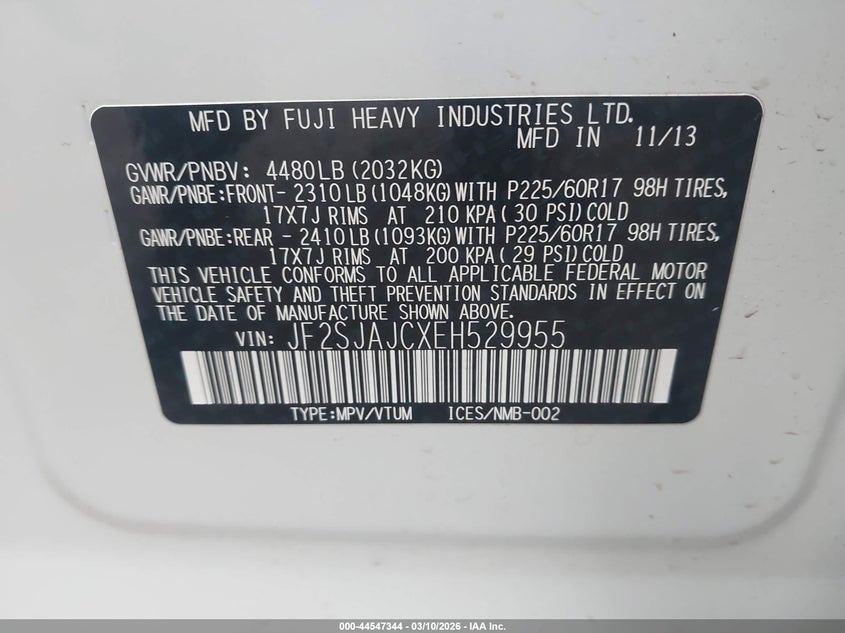 • JF2SJAJCXEH529955
