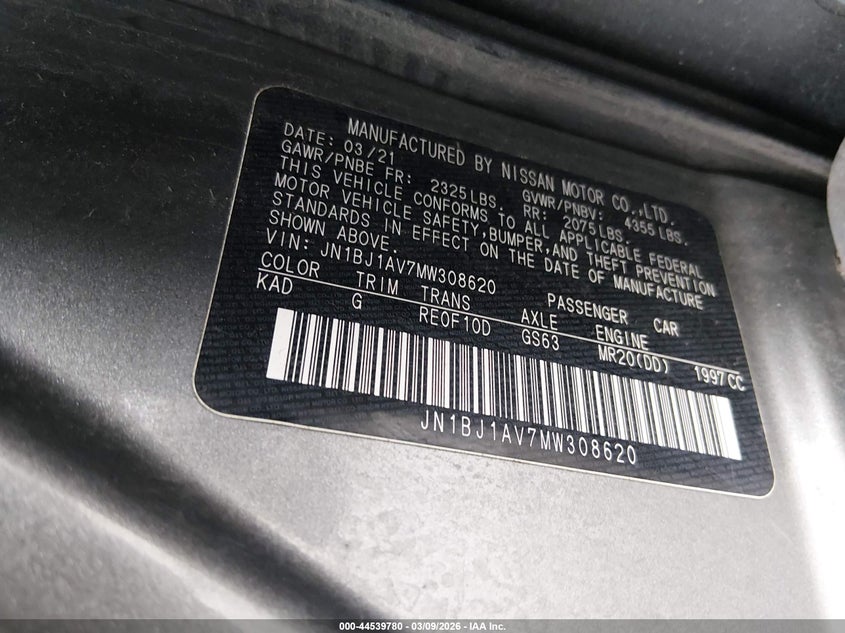 • JN1BJ1AV7MW308620