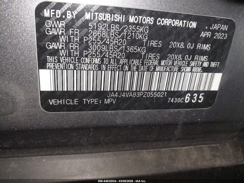 • JA4J4VA83PZ055021