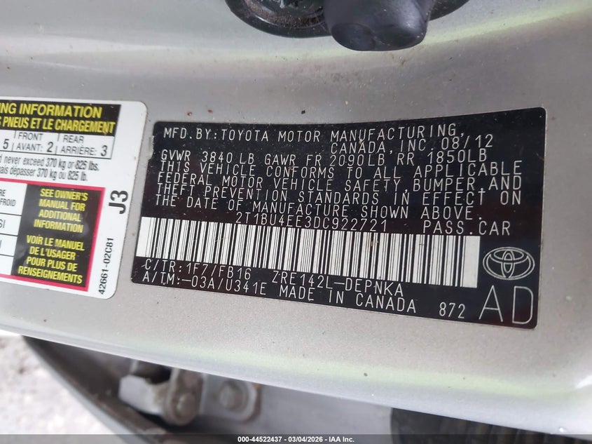 • 2T1BU4EE3DC922721