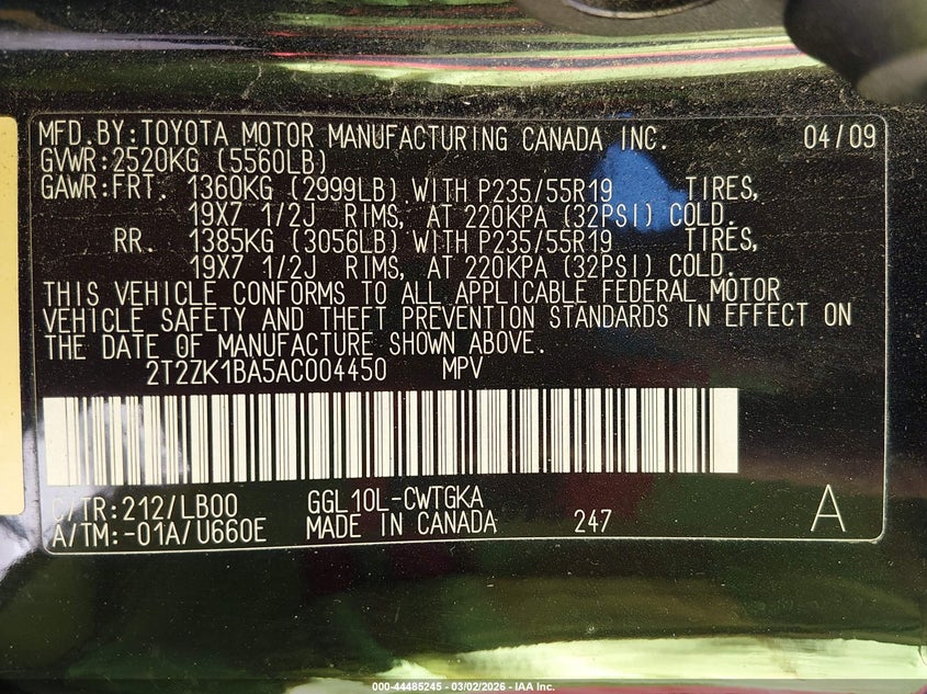 • 2T2ZK1BA5AC004450