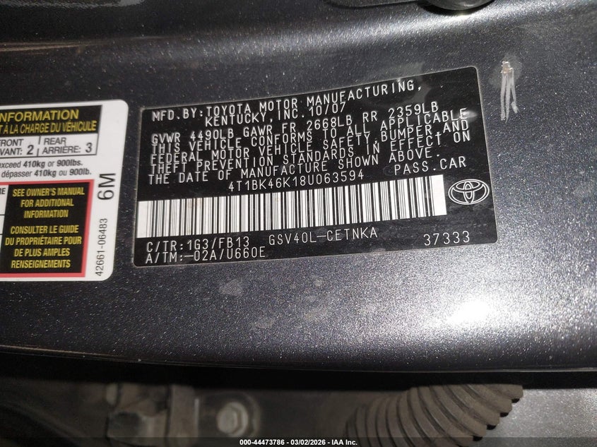 • 4T1BK46K18U063594