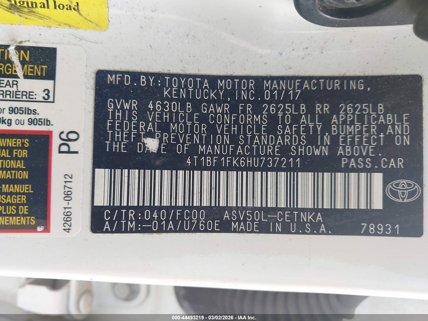 • 4T1BF1FK6HU737211