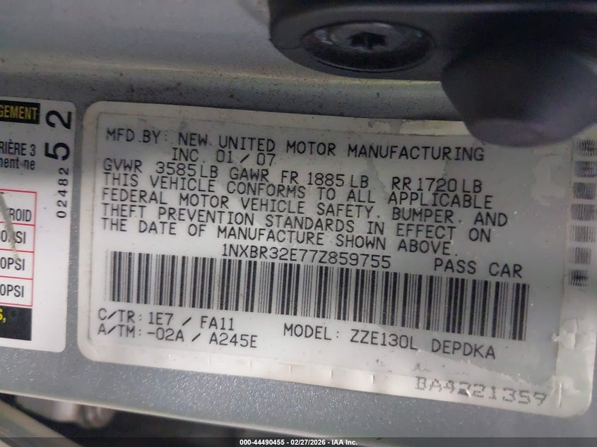 • 1NXBR32E77Z859755