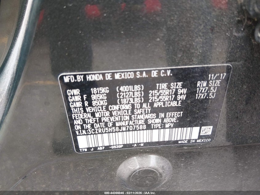 • 3CZRU5H58JM707588