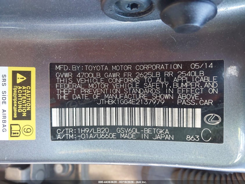 • JTHBK1GG4E2137979