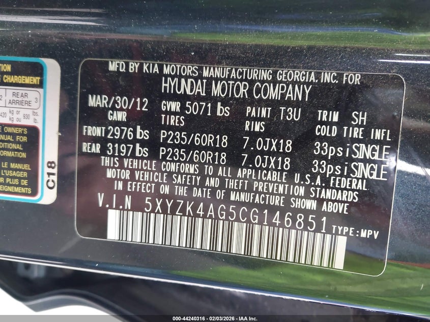 • 5XYZK4AG5CG146851