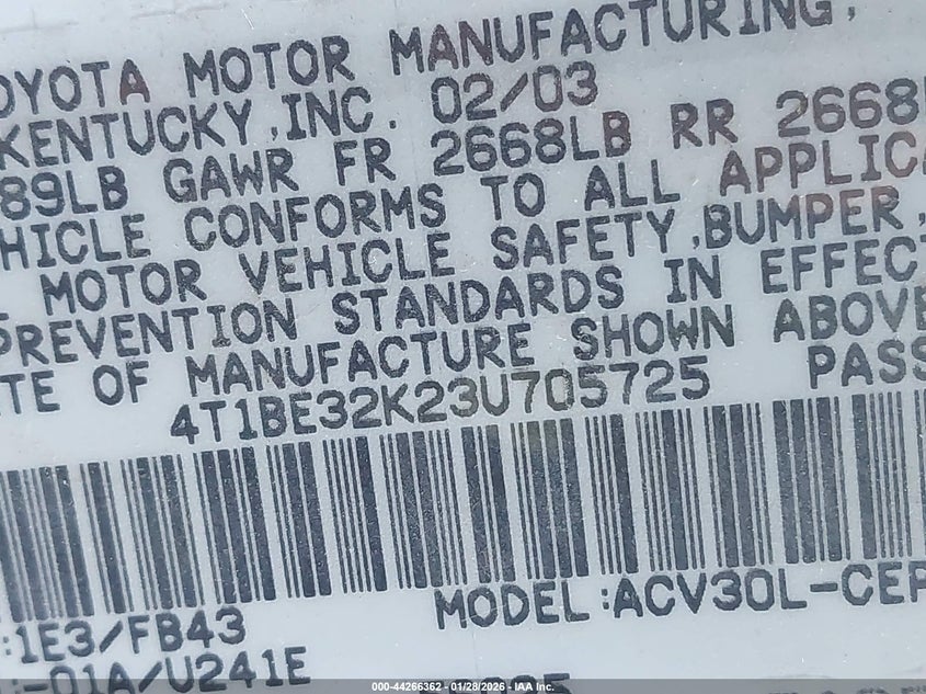 • 4T1BE32K23U705725