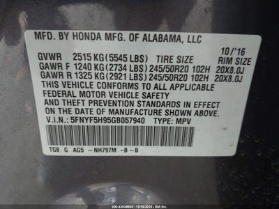 • 5FNYF5H95GB057940