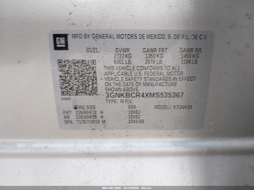 • 3GNKBCR4XMS535367