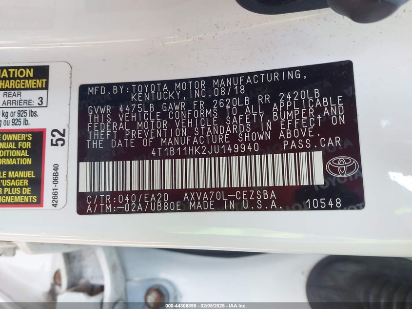 • 4T1B11HK2JU149940