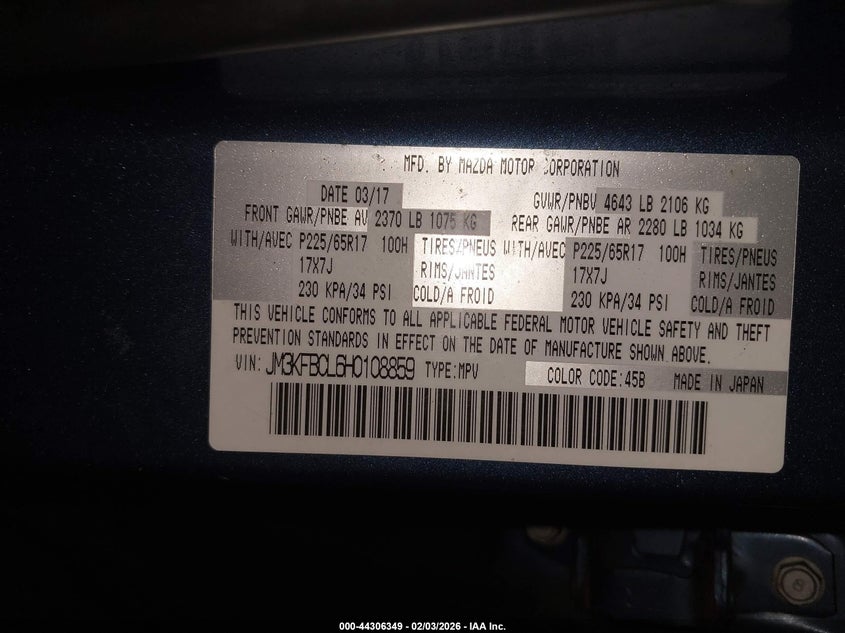 • JM3KFBCL6H0108859