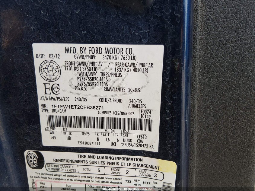 • 1FTFW1ET2CFB38271