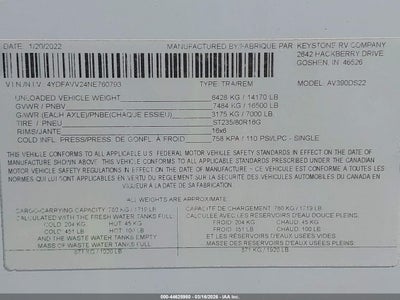2022 KEYSTONE RV AVALANCHE for Sale in Westchester, IL