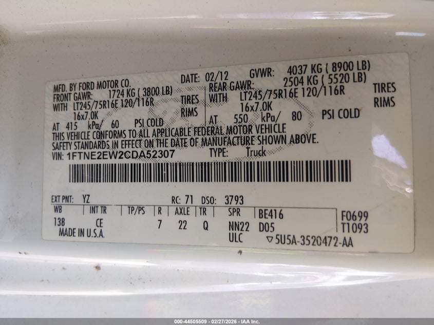• 1FTNE2EW2CDA52307