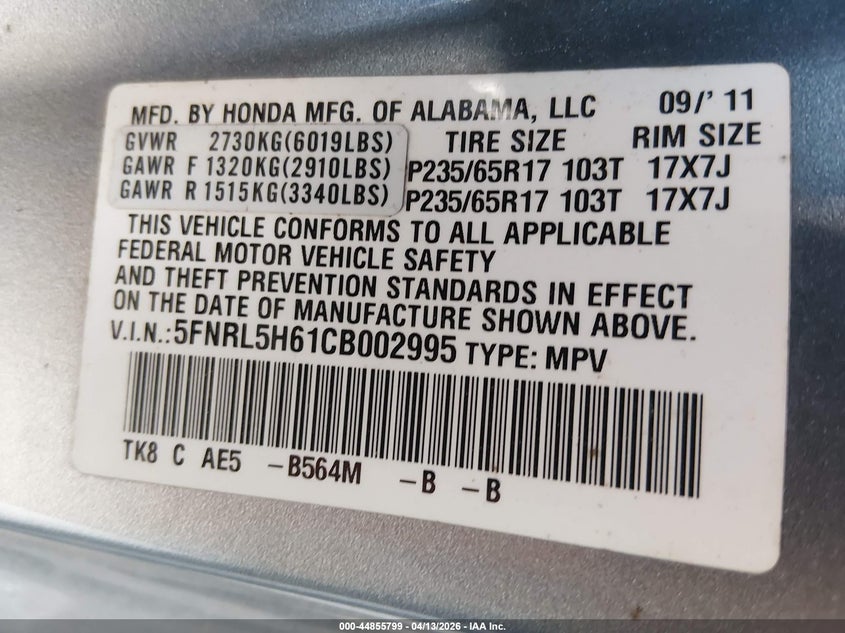 • 5FNRL5H61CB002995