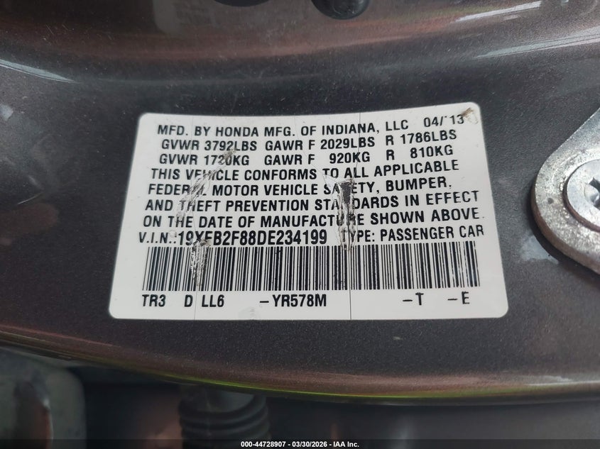 2013 HONDA CIVIC EX for Sale in York Springs, PA