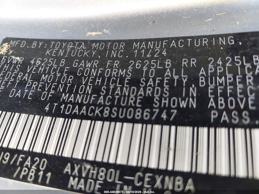 • 4T1DAACK8SU086747